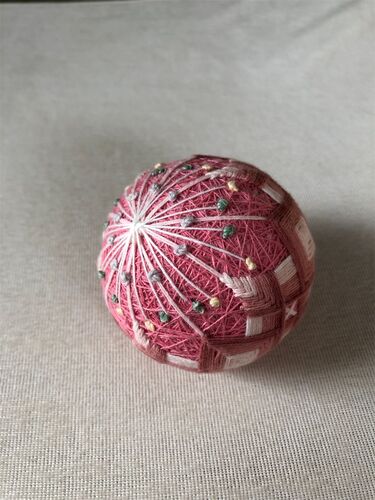 こんにちは!なっきーです 春の季節でもある『桃の花』は、その色合い、花びらの可愛らしさが特徴です。 草木染めの優しい風合いを生かした色合いにしてみました。 教室では左(円周20㎝)を作り、家で少し小さめの手まりを作ってみました。 初級クラスの時に…