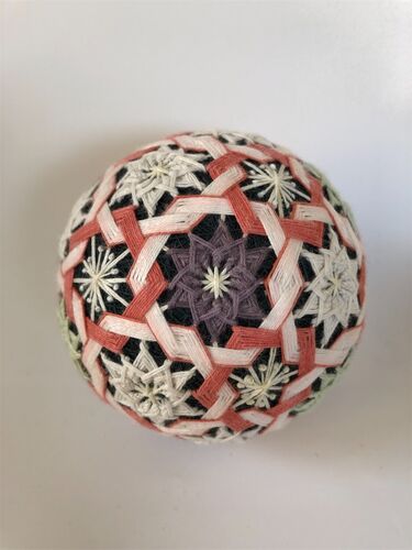 こんにちは!なっきーです 讃岐かがり手まりは、木綿糸を草木により染色して使い、かがり技法(からげる、基準糸にひっかける事)で作る手まりです。 草木染めならではの、落ち着いた温かみのある風合いが特徴です。 もみ殻を芯材として木綿糸を巻きつけた土台…